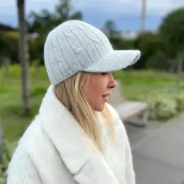 Modna szara czapka z daszkiem z wełny dla kobiet