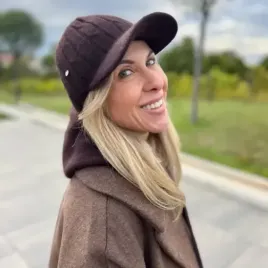 Elegancka damska czapka z daszkiem – brązowa wełna