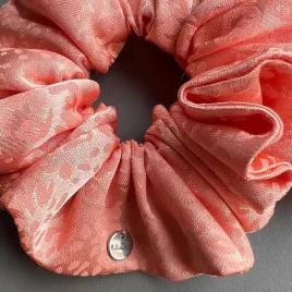 Maxi scrunchie w soczystym łososiowym kolorze doskonale trzyma włosy i zdobi.