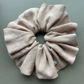 Naturalna gumka do włosów uszyta z naturalnego lnu w kolorze neutralnego beżu.