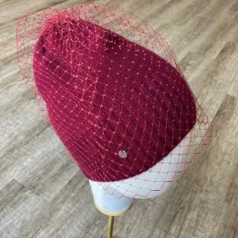 Kaszmirowo-wełniana bordowa czapka z woalką.