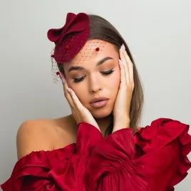 Kapelusik do włosów z woalką truskawkowa czerwień.