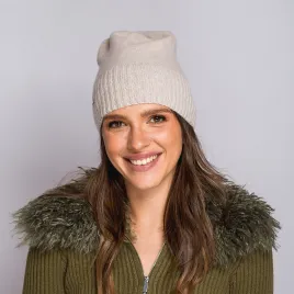 Jasna czapka z prążkowanym w odcieniu ecru