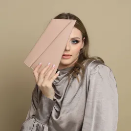 Oryginalna koktajlowa kopertówka wykonana została z naturalnej skóry w klasycznym, ponadczasowym odcieniu nude- piękny miks beżu i różu. Nasza torebka przykuwa wzrok nie tylko pięknym kolorem ale także niebanalnym kształtem . Odnajdzie się w bardzo prostych stylizacjach jak i w klasycznych. Idealnie pasuje do naszych ozdób na głowę.