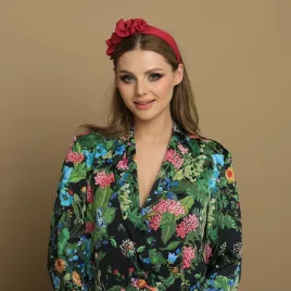 Unikatowa opaska damska beżowym kolorze wykonana z matowej wiskozowej tkaniny. Zwraca uwagę ale nie jest "krzykliwa". Ma piękny amarantowy, całoroczny kolor. Jej ozdobę stanowi drapowana ręcznie przyszywana tkanina. To ozdoba na co dzień, a dla mniej odważnych na wyjątkowe okazje. Jest niezwykle twarzowa