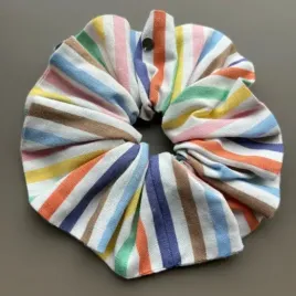 Scrunchie w wersji mini w kolorowe paseczki doskonale trzyma włosy, zdobi i robi wakacyjny vibe.