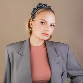 Wąska satynowa opaska damska z unikatowym, ręcznie układanym i wszywanym zdobieniem, w lekkim artystycznym nieładzie, co sprawia, że każda z nich jest wyjątkowa. Wykonana jest z mięsistej, bawełnianej satyny w odcieniu oliwkowym. Doskonale prezentuje się w eleganckich, ale także codziennych stylizacjach.