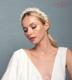 Delikatna ślubna opaska z perłowym akcentem. Mnóstwo drobnych pręcików tworzy niesamowity i unikatowy efekt. Ta ozdoba to ciekawe uzupełnienie klasycznej jak i nowoczesnej ślubnej stylizacji.