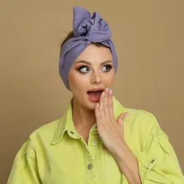 Opaska- turban wykonana ze szlachetnego lnu w liliowym letnim kolorze. Posiada ona wewnątrz drucik zatem możesz ją dowolnie formować na wiele sposobów, dzięki czemu za każdym razem będziesz wyglądać jakbyś miała inną opaskę. Niezwykle kreatywna ozdoba na głowę. Jest też praktyczna, bo doskonale kamufluje nieuczesane włosy i świetnie sprawdza się na co dzień, na zakupach, spacerach i wakacyjnych wyprawach.