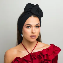 Opaska-turban z przewiewnego muślinu w czarnym kolorze, z drucikiem wewnątrz, który pozwala formować ją na różne sposoby. Kreatywna ozdoba na głowę, idealna do ukrycia nieuczesanych włosów. Lekka, praktyczna i świetna na co dzień – na zakupy, spacery czy wakacje. Zajmuje mało miejsca w bagażu (po złożeniu jest płaska).