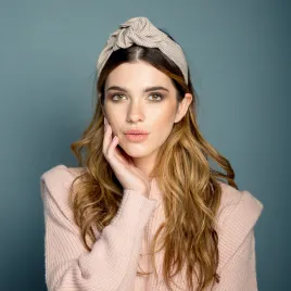 Opaska z wiązaniem beżowa pepitka.