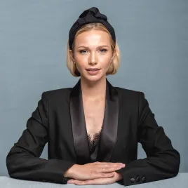 Prosta klasyczna czarna opaska z supłem do włosów do pracy i na co dzień.