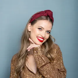 Błyszcząca opaska burgundowa z wiązaniem.