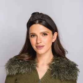 Opaska w pepitkę czarno- brązową z supłem