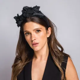 Czarna opaska z kwiatową aplikacją i połyskiem